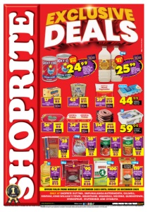 www.shoprite.co.za www.shoprite.mobi follow us on OFFERS VALID FROM MONDAY 22 DECEMBER 2025 UNTIL SUNDAY 28 DECEMBER 2025 ONLY AT SHOPRITE DUTYWA, EMPUMALANGA-BUTTERWORTH, GILLWELL, KENTANI, KING WILLIAM’S TOWN, MDANTSANE, MQANDULI, NGCOBO, QUEENSTOWN, STERKSPRUIT, STUTTERHEIM AND ZIYABUYA ECFOSLDRNB/E OFFERS VALID FROM MONDAY 22 DECEMBER 2025 UNTIL SUNDAY 28 DECEMBER 2025. PRICES APPLY TO SHOPRITE DUTYWA, EMPUMALANGA-BUTTERWORTH, GILLWELL, KENTANI, KING WILLIAM’S TOWN, MDANTSANE, MQANDULI, NGCOBO, QUEENSTOWN, STERKSPRUIT, STUTTERHEIM AND ZIYABUYA. WHILE STOCKS LAST. WE RESERVE THE RIGHT TO LIMIT QUANTITIES. NO TRADERS. VAT INCLUDED. ERRORS AND OMISSIONS EXCEPTED. CUSTOMER CARE LINE 0800 01 07 09 (TOLL-FREE). SAVE R3 RHODES TOMATO & ONION MIX 410g 1899 SAVE R5 RHODES CHAKALAKA all variants 400g each 1999 SAVE R12 SUNSTAR PURE COOKING OIL 2l 6299 SAVE R50 GOLDEN DELIGHT LONG GRAIN WHITE PARBOILED THAI RICE 10kg 11999 10kg SAVE R30 IWISA NO.1 SUPER MAIZE MEAL 10kg R100 10kg SAVE R10 2499 LUCKY STAR CHICKEN LIVERS IN PERI-PERI SAUCE/GRAVY 400g each SAVE R5 PLAZA VITA START PORRIDGE all variants 1kg each 2899 1kg SAVE R11 STORK COUNTRY SPREAD 40% FAT SPREAD 1kg 4599 SAVE R5 BLOSSOM REGULAR MARGARINE 500g 1799 SAVE R10 RITEBRAND FROZEN MIXED VEGETABLES 900g 2999 SAVE R8 BOKKIE FRENCH POLONY 750g 2699 SAVE R10 RITEBRAND CHICKEN POLONY 1kg 3499 SAVE R25 FARMER JOE’S FROZEN BRAAIWORS 5x500g 11499 MR. PASTA SPAGHETTI/ MACARONI PASTA 500g SAVE R4 ANY 2 FOR R28 ALLSOME LONG GRAIN PARBOILED RICE 2kg SAVE R30 3 FOR R90 2kg SAVE R3 2599 SUNDALE AMASI AFRIKA LOW FAT MAAS 2kg each SELECTED STORES ONLY 4499 FARMYARD LARGE EGGS 18 per tray 5999 SPOONFULLS ICE CREAM all variants 2l each 2kg 2l 2l
