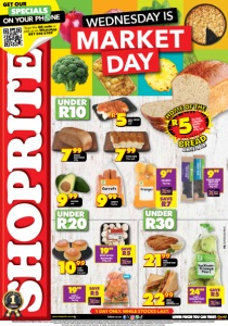 WEDNESDAY IS MARKET DAY 1 DAY ONLY. WHILE STOCKS LAST. UNDER R10 R5 HOME OF THE BREAD IN-STORE STANDARD BROWN BREAD 600g each SINCE 2016 UNDER R20 UNDER R30 www.shoprite.co.za www.shoprite.mobi follow us on OFFERS VALID WEDNESDAY 22 OCTOBER 2025 ONLY. PRICES APPLY TO SHOPRITE HYPER GREENACRES AND UITENHAGE AND SHOPRITE STORES ALIWAL NORTH, AMALINDA, BEAUFORT WEST, BETHELSDORP, BOOYSEN PARK, BRIDGETON, BUTTERWORTH-FINGOLAND,CAXTON STREET, CONCORDIA, CRADOCK, DAKU, DESPATCH, DUTYWA, ELLIOT, ELLIOTSDALE, EMPUMALANGA-BUTTERWORTH, EZBELENI, GEORGE, GILLWELL, GOLDEN EGG, GOVAN MBEKI, GRAAFF-REINET, GRAHAMSTOWN, HUMANSDORP, JEFFREYS BAY, KENAKO, KENTANI, KING WILLIAM’S TOWN, KIRKWOOD, KNYSNA, KWANOBUHLE, KWANONQABA, LADY FRERE, MBASHE MALL, MDANTSANE, MDANTSANE CITY, MOTHERWELL, MQANDULI, MTHATHA PLAZA, NGCOBO, NGEBS, NGQELENI, OUDTSHOORN, PIER 14, PLETTENBERG BAY, QUEENSTOWN, STANDFORD SQUARE, STERKSPRUIT, STUTTERHEIM, THEMBALETHU, TSOMO, UMTATA AND ZIYABUYA. WHILE STOCKS LAST. WE RESERVE THE RIGHT TO LIMIT QUANTITIES. NO TRADERS. VAT INCLUDED. ERRORS AND OMISSIONS EXCEPTED. CUSTOMER CARE LINE 0800 01 07 09 (TOLL-FREE). R5PAP & SMOOR MEAL each 799 BROWN MAIZE BREAD 600g 799 SCHOOL BUNS 10 per pack ORANGES 1kg bag SAVE R7 999 SAVE R5 WHITE BUTTON MUSHROOMS 250g pack 1999 SAVE R5 CLASS 1 PACKHAM PEARS 1,5kg bag 2499 2299 WHITE TOASTED DAGWOOD each 2199 FRIED BATTERED HAKE each ECFOSLDQKB/E 1099 PLAIN SCONES 3 per pack 999 AVOCADO each 999 CARROTS 1kg bag SAVE R5 CLASS 1 TANGO FRUIT 1kg bag 1999 PADKOS DRIED FRUIT BAR all variants 40g each 999 NEW
