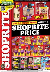 OFFERS VALID FROM THURSDAY 9 OCTOBER UNTIL SUNDAY 12 OCTOBER 2025 WITH THE PRICE GET SO MUCH MORE www.shoprite.co.za www.shoprite.mobi follow us on CLOVER VANILLA FLAVOURED CUSTARD 1kg SAVE R21 BUY 2 FOR R45 FATTI’S & MONI’S SPAGHETTI/ MACARONI PASTA 500g SAVE R8 ANY 2 FOR R32 COCA-COLA ORIGINAL LESS SUGAR SOFT DRINK 2l SAVE R11 2 FOR R45 SAVE R8 BOKKIE FRENCH POLONY 750g 2699 SAVE R3 2999 DARLING AMASI MAAS 2kg GET THIS FREE FREE DEAL BUY FARMBEST FRESH CHICKEN BRAAI PACK 650g AND GET A ROBERTSONS CHICKEN SPICE 7g FREE! R39 NESCAFÉ RICOFFY INSTANT COFFEE 250g/280g each 5999 SAVE R20 19999 GOLDI/FARMER’S CHOICE FROZEN CHICKEN MIXED PORTIONS 5kg each 5kg TWINSAVER CLASSIC 2-PLY FRESH TOILET ROLLS 9 per pack SAVE R7 4899 ECFOSLDPQT/E R249 LOVIES PREMIUM DISPOSABLE NAPPIES/PANTS per pack ANY 2 FOR BUY 1 FOR 13999 PRICE PER NAPPY NEWBORN PACK OF 56 R2,49 MINI PACK OF 50 R2,79 MIDI PACK OF 44 R3,18 MAXI PACK OF 42 R3,33 JUNIOR PACK OF 40 R3,49 VALUE PACK BOKOMO WEET-BIX WHOLEGRAIN WHEAT BISCUITS 900g SAVE R15 4999 R49 LUCKY STAR PILHARDS all variants 400g ANY 2 FOR BUY 1 FOR 2699 HOMEGROWN BAKED BEANS IN TOMATO SAUCE 410g SAVE R6 R49 5 FOR SAVE R10 CLOVER KRUSH 100% FRUIT JUICE BLEND all variants 1,5l each 3999 R99 ELLIS BROWN COFFEE CREAMER 750g BUY 2 FOR BUY 1 FOR R5699 BLUE RIBBON/STAR/ MISTER BREAD SLICED BROWN BREAD 700g each SAVE R3 1399 DORITOS CORN CHIPS all variants 145g SAVE R9 ANY 2 FOR R39 PRICE PER PANTS SIZE 3 PACK OF 40 R3,49 SIZE 4 PACK OF 38 R3,68 SIZE 5 PACK OF 36 R3,88 SIZE 6 PACK OF 34 R4,11 VALUE PACK ENGLISH CUCUMBER each/ICEBERG LETTUCE HEAD per pack/CLASS 1 TOMATOES 1kg bag/CLASS 1 ONIONS 1kg bag BUY ANY 3 SAVE R5 OFFERS VALID FROM THURSDAY 9 OCTOBER TO SUNDAY 12 OCTOBER 2025. PRICES APPLY TO SHOPRITE HYPER GREENACRES AND UITENHAGE AND SHOPRITE STORES ALIWAL NORTH, AMALINDA, BEAUFORT WEST, BETHELSDORP, BOOYSEN PARK, BRIDGETON, BUTTERWORTH FINGOLAND, CAXTON STREET, CONCORDIA, CRADOCK, DAKU, DESPATCH, DUTYWA, ELLIOT, ELLIOTDALE, EMPUMALANGA-BUTTERWORTH, EZIBELENI, GEORGE, GILWELL, GOLDEN EGG, GOVAN MBEKI, GRAAFF-REINET, GRAHAMSTOWN, HUMANSDORP, JEFFREYS BAY, KENAKO, KENTANI, KING WILLIAM’S TOWN, KNYSNA, KWANOBUHLE, KWANONQABA, LADY FRERE, MBASHE MALL, MDANTSANE, MDANTSANE CITY, MOTHERWELL, MQANDULI, MTHATHA PLAZA, NGCOBO, NGEBS, NGQELENI, OUDTSHOORN, PIER 14, PLETTENBERG BAY, QUEENSTOWN, STANDFORD SQUARE, STERKSPRUIT, STUTTERHEIM, THEMBALETHU, TSOMO, UMTATA AND ZIYABUYA. WHILE STOCKS LAST. WE RESERVE THE RIGHT TO LIMIT QUANTITIES. NO TRADERS. VAT INCLUDED. ERRORS AND OMISSIONS EXCEPTED. CUSTOMER CARE LINE 0800 01 07 09 (TOLL-FREE). 9999 HOMEBURGER BEEF BURGER PATTIES per kg 8999 BEEF POTJIEKOS PIECES per kg BUTCHERY 6499 MARINATED SPATCHCOCK CHICKEN per kg CLASS 1 POTATOES 3kg bag SAVE R5 3499 FRUIT &VEG