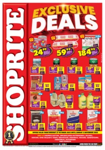 www.shoprite.co.za www.shoprite.mobi follow us on ONLY AT SHOPRITE DUTYWA, EMPUMALANGA-BUTTERWORTH, GILLWELL, KENTANI, KING WILLIAM’S TOWN, MDANTSANE, MQANDULI, NGCOBO, QUEENSTOWN, STERKSPRUIT, STUTTERHEIM AND ZIYABUYA OFFERS VALID FROM MONDAY 27 OCTOBER 2025 UNTIL SUNDAY 2 NOVEMBER 2025 ECFOSLDQFT/E LUCKY STAR CHICKEN LIVERS IN PERI-PERI SAUCE/ GRAVY 400g each 2499 SAVE R10 SAVE R15 RAINBOW FROZEN CHICKEN LEG QUARTERS 3,5kg 18499 3,5kg SAVE R3 RHODES TOMATO & ONION MIX 410g 1899 SAVE R8 RHODES PEACH SLICES/ HALVES IN SYRUP 410g each 1999 SAVE R7 RHODES SMOOTH APRICOT JAM 900g 3799 MR. PASTA SPAGHETTI/MACARONI 500g SAVE R4 ANY 2 FOR R28 TRUDA MYLIFE WHOLEGRAIN FOODS ORIGINAL/BANANA INSTANT PORRIDGE 500g SAVE R5 ANY 2 FOR R25 SAVE R15 CAPE POINT FROZEN WHOLE TILAPIA 900g 5999 SAVE R4 TOP SCORE INSTANT MAIZE PORRIDGE all variants 500g each 1299 SAVE R10 KING KORN FINE MABELE MEAL 2kg 3999 2kg DARLING AMASI MAAS 4l SAVE R10 2 FOR 11999 4l PAN COOKING OIL 5l each SAVE R40 14999 5l SAVE R15 WILLINTON RICE 5kg 7499 5kg SAVE R25 HULETTS SUNSWEET BROWN SUGAR 8kg 17499 8kg SAVE R20 RITEBRAND SUPER MAIZE MEAL 10kg 9999 10kg SAVE R20 HULETTS WHITE SUGAR 10kg 23499 10kg OFFERS VALID FROM MONDAY 27 OCTOBER 2025 UNTIL SUNDAY 2 NOVEMBER 2025. PRICES APPLY TO SHOPRITE DUTYWA, EMPUMALANGA-BUTTERWORTH, GILLWELL, KENTANI, KING WILLIAM’S TOWN, MDANTSANE, MQANDULI, NGCOBO, QUEENSTOWN, STERKSPRUIT, STUTTERHEIM AND ZIYABUYA. WHILE STOCKS LAST. WE RESERVE THE RIGHT TO LIMIT QUANTITIES. NO TRADERS. VAT INCLUDED. ERRORS AND OMISSIONS EXCEPTED. CUSTOMER CARE LINE 0800 01 07 09 (TOLL-FREE). SAVE R10 RITEBRAND FRENCH POLONY 2kg each 5999