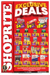 Page 1 www.shoprite.co.za www.shoprite.mobi follow us on ONLY AT SHOPRITE DUTYWA, EMPUMALANGA-BUTTERWORTH, GILLWELL, KENTANI, KING WILLIAM’S TOWN, MDANTSANE, MQANDULI, NGCOBO, QUEENSTOWN, STERKSPRUIT, STUTTERHEIM AND ZIYABUYA OFFERS VALID FROM MONDAY 13 OCTOBER 2025 UNTIL SUNDAY 19 OCTOBER 2025 ECFOSLDQFQ/E LUCKY STAR CHICKEN LIVERS IN PERI-PERI SAUCE/ GRAVY 400g each 2499 SAVE R10 SAVE R10 SAVE R10 RITEBRAND FRENCH POLONY 2kg 5999 RAINBOW FROZEN CHICKEN LEG QUARTERS 3,5kg 18999 3,5kg SAVE R3 RHODES TOMATO & ONION MIX 410g 1899 SAVE R8 RHODES PEACH SLICES/ HALVES IN SYRUP 410g each 1999 SAVE R5 RHODES CHAKALAKA all variants 400g each 1999 SAVE R7 RHODES SMOOTH APRICOT JAM 900g 3799 MR. PASTA SPAGHETTI/MACARONI 500g SAVE R4 ANY 2 FOR R28 TRUDA MY LIFE WHOLEGRAIN MAIZE MEAL all variants 500g SAVE R5 ANY 2 FOR R25 SAVE R15 CAPE POINT FROZEN WHOLE TILAPIA 900g 5999 SAVE R10 RAINBOW IQF SMOKED ORIGINAL/ CHILLI 1kg/CHEESE RUSSIANS 850g each 6299 SAVE R4 TOP SCORE INSTANT MAIZE PORRIDGE all variants 500g each 1299 SAVE R10 KING KORN FINE MABELE MEAL 2kg 3999 DARLING AMASI MAAS 4l SAVE R10 2 FOR 11999 PAN COOKING OIL 5l SAVE R40 14999 2kg 4l 5l SAVE R15 WILLINTON RICE 5kg 7499 SAVE R20 RITEBRAND SUPER MAIZE MEAL 10kg 9999 SAVE R20 HULETTS WHITE SUGAR 10kg 23499 SAVE R25 HULETTS SUNSWEET BROWN SUGAR 8kg 17499 5kg 8kg 10kg 10kg OFFERS VALID FROM MONDAY 13 OCTOBER 2025 UNTIL SUNDAY 19 OCTOBER 2025. PRICES APPLY TO SHOPRITE DUTYWA, EMPUMALANGA-BUTTERWORTH, GILLWELL, KENTANI, KING WILLIAM’S TOWN, MDANTSANE, MQANDULI, NGCOBO, QUEENSTOWN, STERKSPRUIT, STUTTERHEIM AND ZIYABUYA. WHILE STOCKS LAST. WE RESERVE THE RIGHT TO LIMIT QUANTITIES. NO TRADERS. VAT INCLUDED. ERRORS AND OMISSIONS EXCEPTED. CUSTOMER CARE LINE 0800 01 07 09 (TOLL-FREE).