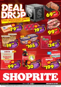 www.shoprite.co.za www.shoprite.mobi follow us on OFFERS VALID FROM FRIDAY 21 NOVEMBER 2025 TO SUNDAY 23 NOVEMBER 2025. PRICES APPLY TO SHOPRITE STORES GAUTENG, MPUMALANGA, NORTH WEST & LIMPOPO PROVINCE, EXCLUDING GANYESA, IKAGENG, JOUBERTON, KANANA, KHUTSONG, KLERKSDORP TERMINUS, LEHURUTSHE, LICHTENBURG, MAFIKENG, MMABATHO, ORKNEY, PARYS, POTCHEFSTROOM, SASOLBURG, SCF KLERKSDORP, SCHWEIZER-RENEKE, VOLKSRUST, VRYBURG, WOLMARANSSTAD & ZEERUST. SOME ADVERTISED PRODUCTS IN THIS LEAFLET MAY NOT BE STOCKED AT SMALLER SHOPRITE STORES. WHILE STOCKS LAST. WE RESERVE THE RIGHT TO LIMIT QUANTITIES. NO TRADERS. VAT INCLUDED. ERRORS AND OMISSIONS EXCEPTED. CUSTOMER CARE LINE 0800 01 07 09 (TOLL-FREE). THIS WEEKEND ONLY! 21 - 23 NOVEMBER 2025 ANY 2 FOR R199HUGGIES DRY COMFORT DISPOSABLE NAPPIES 42/44/46/52/58 per pack SAVE R121 GNFOSLDQWO/E 2l 9999 STEWING BEEF per kg SAVE R10 1999 RENOWN FRENCH POLONY 750g 2 FOR R105RAMA ORIGINAL 60% FAT SPREAD 1kg SAVE R35 1kg 6999 COOKED PORK SHOULDER RIB per kg SAVE R30 7999 CLOVER CHEDDAR/GOUDA CHEESE 550g each SAVE R13 2499 BOKKIE RED/NO-PORK VIENNAS 500g each 1999 CLOVER BLISS DOUBLE CREAM YOGHURT all variants 500g each VALUE PACK BOTH FOR R30COCA-COLA ORIGINAL TASTE LESS SUGAR SOFT DRINK 2l + TRUDA SPOOKIES MAIZE PUFF all variants 100g SAVE R13 9999 RITEBRAND PARBOILED RICE 10kg 10kg SAVE R80