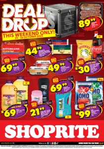www.shoprite.co.za www.shoprite.mobi follow us on THIS WEEKEND ONLY! 24 - 26 OCTOBER 2025 SAVE R11 2199 CLERE BODY LOTION/ CRÈME FOR LADIES/ MEN all variants 300ml/400ml each SAVE R25 6999 SATISKIN BUBBLE BATH all variants 2l each 2l ANY 2 FOR R99OMO HAND WASHING POWDER all variants 2kg 2kg ANY 2 FOR R69TAKE 5 DAIRY FRUIT MIX all variants 3l SAVE R13 6999 RITEBRAND LARGE EGGS 30 per tray 3l 8999 GRABOUW WORS THICK/THIN per kg SAVE R23 4499 LANCEWOOD CHEDDAR/SWEETMILK FULL CREAM PROCESSED CHEESE SLICES 350g each SAVE R13 4999 RAINBOW CHICKEN POLONY all variants 1kg each SAVE R41 BOTH FOR R30COCA-COLA ORIGINAL TASTE LESS SUGAR SOFT DRINK 2l + SPOOKIES MAIZE SNACK all variants 100g SAVE R13 GNFOSLDQWK/E 2l OFFERS VALID FROM FRIDAY 24 OCTOBER TO SUNDAY 26 OCTOBER 2025. PRICES APPLY TO SHOPRITE STORES GAUTENG, MPUMALANGA, NORTH WEST & LIMPOPO PROVINCE, EXCLUDING GANYESA, IKAGENG, JOUBERTON, KANANA, KHUTSONG, KLERKSDORP TERMINUS, LEHURUTSHE, LICHTENBURG, MAFIKENG, MMABATHO, ORKNEY, PARYS, POTCHEFSTROOM, SASOLBURG, SCF KLERKSDORP, SCHWEIZER-RENEKE, VOLKSRUST, VRYBURG, WOLMARANSSTAD & ZEERUST. SOME ADVERTISED PRODUCTS IN THIS LEAFLET MAY NOT BE STOCKED AT SMALLER SHOPRITE STORES. WHILE STOCKS LAST. WE RESERVE THE RIGHT TO LIMIT QUANTITIES. NO TRADERS. VAT INCLUDED. ERRORS AND OMISSIONS EXCEPTED. CUSTOMER CARE LINE 0800 01 07 09 (TOLL-FREE).