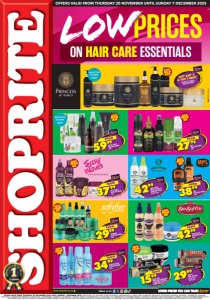 ON HAIR CARE ESSENTIALS Low www.shoprite.co.za www.shoprite.mobi follow us on OFFERS VALID FROM THURSDAY 20 NOVEMBER UNTIL SUNDAY 7 DECEMBER 2025 GNFOSLDRCH/E OFFERS VALID FROM THURSDAY 20 NOVEMBER 2025 UNTIL SUNDAY 7 DECEMBER 2025. PRICES APPLY TO SHOPRITE STORES GAUTENG, MPUMALANGA, NORTH WEST & LIMPOPO PROVINCE, EXCLUDING GANYESA, IKAGENG, JOUBERTON, KANANA, KHUTSONG, KLERKSDORP TERMINUS, LEHURUTSHE, LICHTENBURG, MAFIKENG, MMABATHO, ORKNEY, PARYS, POTCHEFSTROOM, SASOLBURG, SCF KLERKSDORP, SCHWEIZER-RENEKE, VOLKSRUST, VRYBURG, WOLMARANSSTAD & ZEERUST. SOME ADVERTISED PRODUCTS IN THIS LEAFLET MAY NOT BE STOCKED AT SMALLER SHOPRITE STORES. WHILE STOCKS LAST. WE RESERVE THE RIGHT TO LIMIT QUANTITIES. NO TRADERS. VAT INCLUDED. ERRORS AND OMISSIONS EXCEPTED. CUSTOMER CARE LINE 0800 01 07 09 (TOLL-FREE). 2799 ORS HAIRCARE RANGE each FROM 3899 MPL HAIRCARE RANGE each FROM 4299 JABU STONE MULTI PURPOSE/ BRAIDING SPRAY 250ml each PRINCESS OF AFRICA HAIRCARE RANGE BUY ANY 3 & GET 1 FREE! SAVE FROM R5 SAVE FROM R4 SAVE FROM R5 SAVE FROM R33 4299 STA-SOF-FRO HAIRCARE RANGE each FROM SAVE FROM R5 3799 EASY WAVES HAIRCARE RANGE each FROM SAVE FROM R5 5999 NATIVE CHILD HAIRCARE RANGE each FROM SAVE FROM R10 1599 BLACK CHIC HAIR FOOD TREATMENT 125ml/HAIR COLOUR RANGE 28ml each FROM SELECTED STORES ONLY SELECTED STORES ONLY 2999 INECTO HAIR COLOUR all variants 50ml each 3499 PERFECT CHOICE HAIRCARE RANGE each FROM SAVE FROM R5 2999 SOFNFREE HAIRCARE RANGE each FROM SAVE FROM R7