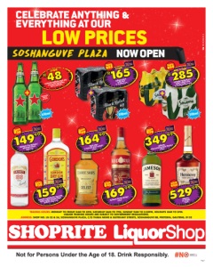 Page 2 Not for Persons Under the Age of 18. Drink Responsibly. OFFERS VALID FROM TUESDAY 07 APRIL 2026 UNTIL SUNDAY 19 APRIL 2026. PRICES ONLY APPLY TO SHOPRITE LIQUORSHOP SHOP NO. LG 55 & 56, SOSHANGUVE PLAZA, C/O THABA NKWE & BUITEKANT STREETS, SOSHANGUVE BB, PRETORIA, GAUTENG, 0152. ALCOHOL NOT FOR SALE TO PERSONS UNDER THE AGE OF 18. LIQUOR TRADING HOURS: MONDAY TO FRIDAY 8AM TO 8PM, SATURDAY 8AM TO 7PM, SUNDAY 9AM TO 3:30PM, HOLIDAYS 8AM TO 5PM. LIQUOR TRADING HOURS ARE SUBJECT TO GOVERNMENT REGULATIONS. LIQUOR ONLY AVAILABLE AT STORES WITH A VALID LIQUOR LICENCE. WE RESERVE THE RIGHT TO LIMIT QUANTITIES. NO TRADERS PLEASE. SELECTED ITEMS MAY NOT BE AVAILABLE AT CERTAIN STORES. VAT INCLUDED. ERRORS & OMISSIONS EXCEPTED (E&OE). WHILE STOCKS LAST. CUSTOMER CARE LINE 0800 01 07 09 (TOLL-FREE). Finest whiskies. Supermarket prices. GNLSLSALZK_E 500ml SPIRITS & LIQUEURS 1,5l WINE WITH CARD SAVE R70 20999 BELL’S BLENDED SCOTCH WHISKY 750ml WITH CARD SAVE R80 28999 JACK DANIEL’S TENNESSEE WHISKEY all variants 750ml each WITH CARD SAVE R50 23999 JOHNNIE WALKER RED LABEL BLENDED SCOTCH WHISKY 750ml 440ml 500ml WITH CARD SAVE R25 9499 WINDHOEK PREMIUM DRAUGHT BEER 6x440ml NRB/ 6x500ml cans per pack WITH CARD SAVE 10% 6599 AUTUMN HARVEST CRACKLING all variants 1,5l each WITH CARD SAVE 10% 8999 NEDERBURG BARONNE CABERNET SAUVIGNON/SHIRAZ RED BLEND WINE 750ml WITH CARD SAVE R35 14999 AMARULA CREAM LIQUEUR all variants 750ml each 355ml WITH CARD SAVE R40 R190 CORONA EXTRA BEER 2x 6x355ml NRB 2 FOR 500ml WITH CARD SAVE R65 R165 FLYING FISH PREMIUM LEMON FLAVOURED BEER 2x 6x500ml cans 2 FOR WITH CARD SAVE R65 R195 BRUTAL FRUIT SPARKLING RUBY APPLE/LITCHI SÈCHE/ STRAWBERRY ROUGE SPIRIT COOLER 2x 6x500ml cans ANY 2 FOR WITH CARD SAVE R70 27999 TANQUERAY GIN all variants 750ml each 22999 SKYY VODKA all variants 750ml each 17499 CAPTAIN MORGAN ORIGINAL SPICED GOLD RUM 750ml NEW! WITH CARD SAVE R80 28999 JÄGERMEISTER ORIGINAL/ ORANGE LIQUEUR 750ml each 24999 OLMECA SILVER/ REPOSADO TEQUILA 750ml each BEERS & CIDERS
