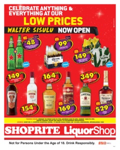 Page 2 Not for Persons Under the Age of 18. Drink Responsibly. OFFERS VALID FROM TUESDAY 24 FEBRUARY 2026 UNTIL SUNDAY 15 MARCH 2026. PRICES ONLY APPLY TO SHOPRITE LIQUORSHOP SHOP NO. 2, CHOPPIES SHOPPING CENTRE, 19 WALTER SISULU STREET, ERF 152-003, MIDDELBURG, MPUMALANGA 1050. ALCOHOL NOT FOR SALE TO PERSONS UNDER THE AGE OF 18. LIQUOR TRADING HOURS: MONDAY TO FRIDAY 8 AM TO 7 PM, SATURDAY 8 AM TO 6 PM, SUNDAY 10 AM TO 5 PM. LIQUOR TRADING HOURS ARE SUBJECT TO GOVERNMENT REGULATIONS. LIQUOR ONLY AVAILABLE AT STORES WITH A VALID LIQUOR LICENCE. WE RESERVE THE RIGHT TO LIMIT QUANTITIES. NO TRADERS PLEASE. SELECTED ITEMS MAY NOT BE AVAILABLE AT CERTAIN STORES. VAT INCLUDED. ERRORS & OMISSIONS EXCEPTED (E&OE). WHILE STOCKS LAST. CUSTOMER CARE LINE 0800 01 07 09 (TOLL-FREE). Finest whiskies. Supermarket prices. GNLSLSALVT/E_REV 17499 SAVE R20 CAPTAIN MORGAN ORIGINAL SPICED GOLD RUM 750ml R200 SAVE R60 BRUTAL FRUIT SPARKLING RUBY APPLE/LITCHI SÈCHE/STRAWBERRY ROUGE SPIRIT COOLER 2x 6x500ml cans ANY 2 FOR 500ml 28999 SAVE R60 JACK DANIEL’S TENNESSEE WHISKEY all variants 750ml each 20999 SAVE R70 BELL’S BLENDED SCOTCH WHISKY 750ml 24999 SAVE R40 JOHNNIE WALKER RED LABEL BLENDED SCOTCH WHISKY 750ml R180 SAVE R50 FLYING FISH PREMIUM LEMON FLAVOURED BEER 2x 6x500ml cans 2 FOR 500ml 24999 SAVE R80 OLMECA REPOSADO/SILVER TEQUILA 750ml each 27999 SAVE R70 TANQUERAY GIN all variants 750ml each WINE SPIRITS & LIQUEURS 440ml 500ml R200 SAVE R40 WINDHOEK PREMIUM DRAUGHT BEER 2x 6x440ml NRB/ 2x 6x500ml cans per pack ANY 2 FOR 22999 SAVE R50 SKYY VODKA all variants 750ml each BEERS & CIDERS R175 SAVE R45 CARLING BLACK LABEL BEER 2x 6x500ml cans 2 FOR 500ml 15499 SAVE R30 RAIN DANCE WINE all variants 5l each 5l 28999 SAVE R55 JÄGERMEISTER ORIGINAL/ ORANGE LIQUEUR 750ml each NEW! SAVE R25 GORDON’S LONDON DRY GIN/PINK BERRY/ORANGE SPIRIT APERITIF 750ml each 16499