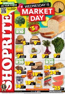 WEDNESDAY IS MARKET DAY 1 DAY ONLY. WHILE STOCKS LAST. UNDER R10 www.shoprite.co.za www.shoprite.mobi follow us on R5 HOME OF THE BREAD IN-STORE STANDARD BROWN BREAD 600g each SINCE 2016 GNFOSLDMKX/E OFFERS VALID WEDNESDAY 5 NOVEMBER 2025 ONLY. PRICES APPLY TO SHOPRITE STORES GAUTENG, MPUMALANGA, NORTH WEST & LIMPOPO PROVINCE, EXCLUDING GANYESA, IKAGENG, JOUBERTON, KANANA, KLERKSDORP TERMINUS, LEHURUTSHE, LICHTENBURG, MAFIKENG, MMABATHO, ORKNEY, PARYS, POTCHEFSTROOM, SASOLBURG, SCF KLERKSDORP, SCHWEIZER-RENEKE, VOLKSRUST, VRYBURG, WOLMARANSSTAD & ZEERUST. SOME ADVERTISED PRODUCTS IN THIS LEAFLET MAY NOT BE STOCKED AT SMALLER SHOPRITE STORES. WHILE STOCKS LAST. WE RESERVE THE RIGHT TO LIMIT QUANTITIES. NO TRADERS. VAT INCLUDED. ERRORS AND OMISSIONS EXCEPTED. CUSTOMER CARE LINE 0800 01 07 09 (TOLL-FREE). 999 SPINACH BUNCH each 2499 SEASON STANDARD APPLES 1,5kg bag UNDER R20 UNDER R30 799 PADKOS ROASTED & SALTED PEANUTS & RAISINS 50g bag 999 KIWI FRUIT each 999 BEETROOT BUNCH each 1499 BLUEBERRIES 125g cup R10PAP, LIVER CAKE & CHAKALAKA MEAL R5OX LIVER BURGER each 999 LIVER & EGG BURGER each 2499 MONASTRY ROLLS 6 per pack 1999 BOERE BREAD LOAF 900g 1999 CLASS 1 ONIONS 2kg net bag 1999 CLASS 1 POTATOES 2kg bag R25WATERMELON QUARTER each