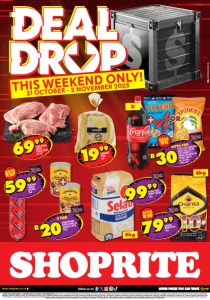 www.shoprite.co.za www.shoprite.mobi follow us on THIS WEEKEND ONLY! 31 OCTOBER - 2 NOVEMBER 2025 OFFERS VALID FROM FRIDAY 31 OCTOBER 2025 TO SUNDAY 2 NOVEMBER 2025. PRICES APPLY TO ALL SHOPRITE STORES BARKLEY ROAD, BATHLAROS, BETHLEHEM, CBD BLOEMFONTEIN, BLOEMFONTEIN, BLOEMHOF, BOITUMELO, BOTHAVILLE, BOTSHABELO, BOTSHABELO MALL, COLESBERG, DE AAR, DELAREYVILLE, FICKSBURG, FLEURDAL, GANYESA, HARTSWATER, HARRISMITH, HEIDEDAL, HEILBRON, IKAGENG, JAN KEMPDORP, KANANA, KATHU, KIMBERLEY, KIMBERLEY CENTRE, KLERKSDORP, KROONSTAD, KURUMAN, LADYBRAND, LEHRUTSE, LEMO MALL, LICHTENBURG, MMABATHO, MAFIKENG, MAITLAND, MANGAUNG, MANDELA PARK, MAOKENG, MIDDESTAD, MOMPATI MALL, MORENA MALL, NAVALSIG, ORKNEY, PAMPIERSTAD, PARYS, POTCHEFSTROOM, POSTMASBURG, POWER ROAD, SASOLBURG, SCHWEIZER-RENEKE, SENEKAL, SETSING, STILFONTEIN, TAUNG, THABA’NCHU, THABONG, UPINGTON, VENTERSDORP, VIRGINIA, VREDE, VRYBURG, WELKOM, WESSELSBRON, WOLMARANSSTAD & ZEERUST. ALL ADVERTISED PRODUCTS IN THIS LEAFLET MAY NOT BE STOCKED AT SHOPRITE VREDE, THABA’NCHU, THABONG AND MINI COLESBERG. WE RESERVE THE RIGHT TO LIMIT QUANTITIES. NO TRADERS. WHILE STOCKS LAST. VAT INCLUDED. ERRORS AND OMISSIONS EXCEPTED. CUSTOMER CARE LINE 0800 01 07 09 (TOLL-FREE). NCFOSLDQWX/E SAVE R20 7999 CHARKA BRIQUETTES 4kg SAVE R27 5999 RENOWN FRENCH POLONY 2kg u 9999 SELATI PURE WHITE SUGAR 5kg SAVE R11 BOTH FOR R30COCA-COLA ORIGINAL TASTE LESS SUGAR SOFT DRINK 2l + TRUDA SPOOKIES OR FLYERS SNACK all variants 100g each OR 4kg 5kg 1999 BANANAS 700g bag 6999 PORK BRAAI CHOPS LOOSE SERVE per kg 2l 2 FOR R20HOMEGROWN BAKED BEANS IN TOMATO SAUCE 410g