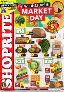 WEDNESDAY IS MARKET DAY 1 DAY ONLY. WHILE STOCKS LAST. www.shoprite.co.za www.shoprite.mobi follow us on R5 HOME OF THE BREAD IN-STORE STANDARD BROWN BREAD 600g each SINCE 2016 OFFERS VALID WEDNESDAY 1 OCTOBER 2025. PRICES APPLY TO ALL SHOPRITE STORES BARKLEY ROAD, BETHLEHEM, BLOEMFONTEIN, BOITUMELO, BOTSHABELO, BOTSHABELO MALL, COLESBERG, DE AAR, FICKSBURG, FLEURDAL, GANYESA, HARRISMITH, HARTSWATER, HEIDEDAL, JAN KEMPDORP, KATHU, KIMBERLEY, KIMBERLEY CENTRE, KLERKSDORP, KROONSTAD, KURUMAN, LADYBRAND, LICHTENBURG, MAFIKENG, MAITLAND, MANDELA PARK, MANGAUNG, MIDDESTAD, MMABATHO, ORKNEY, PARYS, POSTMASBURG, POTCHEFSTROOM, SASOLBURG, SCHWEIZER-RENEKE, SETSING, STILFONTEIN, TAUNG, THABA’NCHU, THABONG, UPINGTON, VREDE, VRYBURG, WELKOM, WESSELSBRON & WOLMARANSSTAD. ALL ADVERTISED PRODUCTS IN THIS LEAFLET MAY NOT BE STOCKED AT SHOPRITE VREDE, THABA’NCHU, THABONG AND MINI COLESBERG. WE RESERVE THE RIGHT TO LIMIT QUANTITIES. NO TRADERS. WHILE STOCKS LAST. VAT INCLUDED. ERRORS AND OMISSIONS EXCEPTED. CUSTOMER CARE LINE 0800 01 07 09 (TOLL-FREE). NCFOSLDIRD/E 799 SPINACH BUNCH each 999 BROWN MAIZE BREAD each UNDER R30 UNDER R10 999 THE BAKERY CURRY & CHEESE BREADSTICK each 1299 CABBAGE HEAD each CLASS 1 PEARS 1kg bag 1499 SAVE R2 THE BAKERY CHEESE PAN ROLLS 12 per pack 1699 SAVE R4 GOLDEN DELICIOUS APPLES 1,5kg bag 2699 SAVE R3 EXCLUDES CHEESE BURGER PIE 999 CLASS 1 POTATOES 1kg bag UNDER R20 999 KIWI FRUIT each 799 AVOCADO each SAVE R6 PIEMAN’S HOMESTYLE VALUE PIES R30 ANY 2 FOR