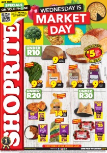 WEDNESDAY IS MARKET DAY 1 DAY ONLY. WHILE STOCKS LAST. R5 HOME OF THE BREAD IN-STORE STANDARD BROWN BREAD 600g each SINCE 2016 www.shoprite.co.za www.shoprite.mobi follow us on UNDER R30 UNDER R10 NCFOSLDIRI/E OFFERS VALID WEDNESDAY 5 NOVEMBER 2025. PRICES APPLY TO SHOPRITE STORES BARKLEY ROAD, BATHLAROS, BETHLEHEM, BLOEMFONTEIN, BLOEMFONTEIN CBD, BLOEMHOF, BOITUMELO, BOTHAVILLE, BOTSHABELO, BOTSHABELO MALL, COLESBERG, DE AAR, DELAREYVILLE, FICKSBURG, FLEURDAL, FRANKFORT, GANYESA, HARRISMITH, HARTSWATER, HEIDEDAL, HEILBRON, IKAGENG, JAN KEMPDORP, KANANA, KATHU, KIMBERLEY, KIMBERLEY CENTRE, KLERKSDORP, KROONSTAD, KURUMAN, LADYBRAND, LEHRUTSE, LEMO MALL, LICHTENBURG, MAFIKENG, MAITLAND, MANDELA PARK, MANGAUNG, MAOKENG, MIDDESTAD, MMABATHO, MOMPATI MALL, MORENA MALL, NAVALSIG, ORKNEY, PAMPIERSTAD, PARYS, POSTMASBURG, POTCHEFSTROOM, POWER ROAD, SASOLBURG, SCHWEIZER-RENEKE, SENEKAL, SETSING, STILFONTEIN, TAUNG, THABA’NCHU, THABONG, UPINGTON, VENTERSDORP, VIRGINIA, VREDE, VRYBURG, WELKOM, WESSELSBRON, WOLMARANSSTAD & ZEERUST. ALL ADVERTISED PRODUCTS IN THIS LEAFLET MAY NOT BE STOCKED AT SHOPRITE VREDE, THABA’NCHU, THABONG AND MINI COLESBERG. WE RESERVE THE RIGHT TO LIMIT QUANTITIES. NO TRADERS. WHILE STOCKS LAST. VAT INCLUDED. ERRORS AND OMISSIONS EXCEPTED. CUSTOMER CARE LINE 0800 01 07 09 (TOLL-FREE). 999 SPINACH BUNCH each 999 CARROTS 1kg bag 999 CLASS 1 POTATOES 1kg bag 999 BEETROOT 1kg bag PEARS 1,5kg bag SAVE R10 1999 STRAWBERRIES 250g pack 2 FOR SAVE R9 R25 UNDER R20 999 THE BAKERY BROWN MAIZE BREAD 600g GOLDEN POCKETS FRIED PASTRY all variants ANY 2 FOR R25 SAVE R4 HOT FRIED CHICKEN WITH PAP & GRAVY each SAVE R10 1999 1499 CLASS 1 LEMONS 800g bag THE BAKERY SMALL CHAKALAKA PIZZA each 1299 SAVE R4