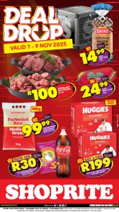 www.shoprite.co.za www.shoprite.mobi follow us on VALID 7 - 9 NOV 2025 OFFERS VALID FROM FRIDAY 7 NOVEMBER 2025 TO SUNDAY 9 NOVEMBER 2025. PRICES APPLY TO SHOPRITE STORES RSA ONLY. WE RESERVE THE RIGHT TO LIMIT QUANTITIES. NO TRADERS. VAT INCLUDED. ERRORS AND OMISSIONS EXCEPTED. CUSTOMER CARE LINE 0800 01 07 09 (TOLL-FREE). HOHBSL9345/E VALUE PACK R100STEWING BEEF/ BEEF POTJIEKOS per kg BOTH FOR SAVE R11 COCA-COLA ORIGINAL TASTE LESS SUGAR 2l + TRUDA SPOOKIES MAIZE PUFF/ FLYERS PUFFED CORN all variants 100g each R30 RITEBRAND MEDIUM GRAIN PARBOILED WHITE RICE 10kg SAVE R50 9999 10kg SASKO WHITE BREAD 700g SAVE R2 1499 R199 BUY 2 FOR SAVE R121 HUGGIES DRY COMFORT VALUE PACK DISPOSABLE NAPPIES BOKKIE FRENCH POLONY 750g SAVE R10 2499