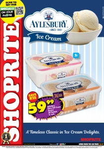 www.shoprite.co.za www.shoprite.mobi follow us on SCAN TO GET OUR SPECIALS ON YOUR PHONE SAVE R15 5999 Aylesbury Dairy Soft Frozen Dessert All Variants 2l each WCFOSLDUUT/E 2l A Timeless Classic in Ice Cream Delights. OFFERS VALID FROM MONDAY 20 APRIL 2026 UNTIL SUNDAY 24 MAY 2026. PRICES APPLY TO SHOPRITE WESTERN CAPE ONLY (EXCLUDING BEAUFORT WEST, GEORGE, KNYSNA, MOSSEL BAY, OUDTSHOORN AND PLETTENBERG BAY). WHILE STOCKS LAST. WE RESERVE THE RIGHT TO LIMIT QUANTITIES. NO TRADERS. VAT INCLUDED. ERRORS AND OMISSIONS EXCEPTED. WWW.SHOPRITE.CO.ZA. CUSTOMER CARE LINE 0800 01 07 09 (TOLL-FREE).