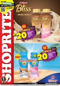 NEW www.shoprite.co.za www.shoprite.mobi follow us on R20CLOVER BLISS DRINKING YOGHURT all variants 250g ANY 2 FOR R20CLOVER TROPIKA DRINKING YOGHURT all variants 250g ANY 2 FOR OFFERS VALID FROM OFFERS MONDAY 17 NOVEMBER UNTIL SUNDAY 21 DECEMBER 2025. PRICES APPLY TO All SHOPRITE WESTERN CAPE STORES, EXCLUDING BEAUFORT WEST, GEORGE, KNYSNA, MOSSEL BAY, OUDTSHOORN & PLETTENBERG BAY. LIQUOR NOT FOR SALE ON SUNDAYS, EXCEPT FOR THE FOLLOWING STORES: BELLVILLE, BLUE DOWNS, BOTHASIG, BROADWAY, GUGULETHU, KAYAMANDI, KHAYELITSHA CBD, KHAYELITSHA SITE C, KLAPMUTS, KUILS RIVER, KRAAIFONTEIN, MACASSAR, MFULENI, MOWBRAY, NONQUBELA, PAROW PARK, ROBERTSON, RUSSELL STREET, SIR LOWRY’S PASS VILLAGE, SOUTHFIELD AND VREDENBURG.. WHILE STOCKS LAST. WE RESERVE THE RIGHT TO LIMIT QUANTITIES. NO TRADERS. VAT INCLUDED. ERRORS AND OMISSIONS EXCEPTED.CUSTOMER CARE LINE 0800 01 07 09 (TOLL-FREE). WCFOSLDRCG/E SAVE R6 SAVE R14