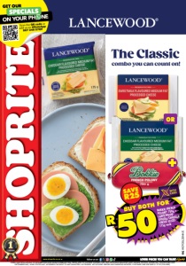 OFFERS VALID FROM MONDAY 29 DECEMBER 2025 UNTIL SUNDAY 8 FEBRUARY 2026. PRICES APPLY TO SHOPRITE WESTERN CAPE ONLY (EXCLUDING BEAUFORT WEST, GEORGE, KNYSNA, MOSSEL BAY, OUDTSHOORN AND PLETTENBERG BAY). WHILE STOCKS LAST. WE RESERVE THE RIGHT TO LIMIT QUANTITIES. NO TRADERS. VAT INCLUDED. ERRORS AND OMISSIONS EXCEPTED. CUSTOMER CARE LINE 0800 01 07 09 (TOLL-FREE). WCFOSLDSNK/E www.shoprite.co.za www.shoprite.mobi follow us on combo you can count on! The Classic SAVE R25 BUY BOTH FOR R50BOKKIE FRENCH POLONY 750g + LANCEWOOD GOUDA/CHEDDAR CHEESE SLICES 175g each OR