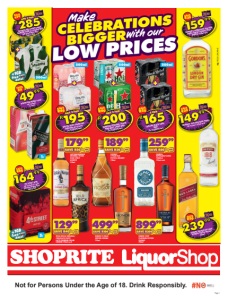 Page 2 Not for Persons Under the Age of 18. Drink Responsibly. 660ml SAVE R15 AMSTEL LAGER BEER 3x660ml RB 3 FOR R54 3l SAVE R30 FIRSTWATCH IMPORTED EXTRA FINE WHISKY 750ml 17999 1l WCLSLSALRN/E EXCLUDING BOTTLE DEPOSIT SAVE R25 J.C. LE ROUX SPARKLING WINE all variants 6x250ml/300ml cans per pack OR VIVANTE RANGE 750ml each 8999 3l WITH CARD SAVE R20 11499 OAKRIDGE NATURAL RED/WHITE WINE BLEND/SWEET ROSÉ WINE 3l each WITH CARD SAVE R30 14499 DROSTDY HOF ADELPRACHT WHITE/ SMOOTH CLARET RED WINE 3l each WITH CARD SAVE R10 12499 AFRICAN DEW MARULA CREAM LIQUEUR all variants 750ml each WITH CARD SAVE R25 18499 SCOTTISH COLLIE BLENDED SCOTCH WHISKY 750ml WITH CARD SAVE R60 21999 BALLANTINE’S FINEST BLENDED SCOTCH WHISKY 750ml WITH CARD SAVE R40 25999 ROYAL FLUSH LUXE NOIR GIN 750ml WITH CARD SAVE R100 39999 MONKEY SHOULDER BLENDED MALT SCOTCH WHISKY 750ml WITH CARD SAVE R100 49999 JAMESON SELECT RESERVE BLENDED IRISH WHISKEY 750ml WITH CARD SAVE R60 20999 KLIPDRIFT PREMIUM BRANDY 750ml WITH CARD SAVE R100 23999 ABSOLUT ORIGINAL/ WATERMELON/ LIME VODKA 750ml each WITH CARD SAVE R20 8999 ROBERTSON WINERY ORANGE/BERRY MIMOSA SPARKLING SPRITZER 750ml each WITH CARD SAVE R10 5499 SEDGWICK’S OLD BROWN 750ml WITH CARD SAVE R8 R36 SCHWEPPES DRINK all variants 2x1l ANY 2 FOR WITH CARD SAVE R15 8499 JUST WINE WHITE/ROSÉ PERLÉ SPARKLING WINE 6x250ml cans per pack WITH CARD SAVE R10 R30 RED BULL ORIGINAL ENERGY DRINK 2x250ml 2 FOR 440ml 500ml 500ml 500ml TRY ME I’M NEW WITH CARD SAVE R65 R165 FLYING FISH PRESSED LEMON FLAVOURED BEER 2x 6x500ml cans 2 FOR WITH CARD SAVE R55 R165 CASTLE LITE BEER 2x 6x500ml cans 2 FOR WITH CARD SAVE R10 8999 CINTRA PILSENER BEER 6x500ml cans WITH CARD SAVE R25 9499 KIX RASPBERRY PEACH/WILD BERRY SPARKLING SPRITZER 6x440ml cans WITH CARD SAVE R20 13999 BACARDI BREEZER all variants 6x440ml cans per pack 440ml Valid from 9 March until 12 April 2026. Ts & Cs Apply. All purchases made with a Shoprite Xtra Savings Card and a qualifying Standard Bank Debit, Cheque or Credit Card, are eligible for the promotion GUARANTEED AIRTIME Get your share of SWIPE GET BUY Spend R350 at any Shoprite LiquorShop. Use your Standard Bank and Xtra Savings cards Check your till slip for your guaranteed airtime voucher. + OFFERS VALID FROM WEDNESDAY 25 MARCH 2026 UNTIL THURSDAY 09 APRIL 2026. PRICES APPLY TO SHOPRITE LIQUORSHOPS WESTERN CAPE PROVINCE. LIQUOR TRADING HOURS ARE SUBJECT TO GOVERNMENT REGULATIONS. LIQUOR ONLY AVAILABLE AT STORES WITH A VALID LIQUOR LICENCE. DEALS EXCLUDE WHOLESALE LIQUORSHOP. WE RESERVE THE RIGHT TO LIMIT QUANTITIES. NO TRADERS PLEASE. SELECTED ITEMS MAY NOT BE AVAILABLE AT CERTAIN STORES. VAT INCLUDED. ERRORS & OMISSIONS EXCEPTED (E&OE). WHILE STOCKS LAST. CUSTOMER CARE LINE 0800 01 07 09 (TOLL-FREE).