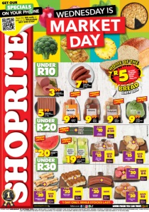WEDNESDAY IS MARKET DAY 1 DAY ONLY. WHILE STOCKS LAST. www.shoprite.co.za www.shoprite.mobi follow us on OFFERS VALID WEDNESDAY 29 OCTOBER 2025 ONLY. PRICES APPLY TO SHOPRITE WESTERN CAPE ONLY (EXCLUDING BEAUFORT WEST, GEORGE, KNYSNA, MOSSEL BAY, OUDTSHOORN AND PLETTENBERG BAY). WHILE STOCKS LAST. WE RESERVE THE RIGHT TO LIMIT QUANTITIES. NO TRADERS. VAT INCLUDED. ERRORS AND OMISSIONS EXCEPTED. CUSTOMER CARE LINE 0800 01 07 09 (TOLL-FREE). WCFMSL5843/E UNDER R20 UNDER R30 SCHOOL BUNS 10 per pack 2 FOR R20 SAVE 999 ICEBERG LETTUCE HEAD per pack 999 CARROTS 1kg bag 999 CLASS 1 ONIONS 1kg bag 999 CLASS 1 POTATOES 1kg bag ENGLISH CUCUMBER 2 FOR R10 SAVE R20 SMALL BEE STING CAKE 130g 2 FOR R15 SAVE R5 CINNAMON SUGAR PANCAKE 5 FOR R20 SAVE R5 SNOWBALL 2 FOR R20 SAVE R4 COPENHAGEN BUNS 2 FOR R15 SAVE R5 590 THOMPSONS SMOKED VIENNAS per 100g 399 THOMPSONS FRENCH POLONY per 100g PLAIN SCONE 90g 4 FOR R20 SAVE R8 R5 HOME OF THE BREAD IN-STORE STANDARD BROWN BREAD 600g each SINCE 2016 UNDER R10 R20WATERMELON QUARTER each FOOTLONG RUSSIAN 2 FOR R20 SAVE 1999 CLASS 1 GOLDEN DELICIOUS APPLES 1,5kg bag 790 THOMPSONS CHEESE RUSSIANS per 100g