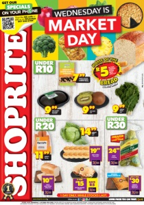 WEDNESDAY IS MARKET DAY R5 HOME OF THE BREAD IN-STORE STANDARD BROWN BREAD 600g each SINCE 2016 www.shoprite.co.za www.shoprite.mobi follow us on 1 DAY ONLY. WHILE STOCKS LAST. OFFERS VALID WEDNESDAY 1 OCTOBER 2025 ONLY. PRICES APPLY TO ALL KWAZULU-NATAL SHOPRITE STORES. 3 DEALS PER CUSTOMER. WHILE STOCKS LAST. WE RESERVE THE RIGHT TO LIMIT QUANTITIES. NO TRADERS. VAT INCLUDED. ERRORS AND OMISSIONS EXCEPTED. CUSTOMER CARE LINE 0800 01 07 09 (TOLL-FREE). PEARS 1,5kg bag 2499 799 PADKOS ROASTED & SALTED PEANUTS & RAISINS 50g bag UNDER R10 999 KIWI FRUIT each 999 RIPE & READY AVOCADOS 2 per pack 1499 CABBAGE HEAD each 999 SPINACH BUNCH each 1199 CARROTS 1kg bag UNDER R20 UNDER R30 CHICKEN SNACKER BURGER SAVE R5 2 FOR R15 ZNFOSRDPUD/E EXCLUDES CHEESE BURGER PIE WHITE MAIZE BREAD 600g each 1099 MINI SCONES 10 per pack 1999 PIEMAN’S HOMESTYLE VALUE PIES R30 ANY 2 FOR