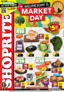 WEDNESDAY IS MARKET DAY R5 HOME OF THE BREAD IN-STORE STANDARD BROWN BREAD 600g each SINCE 2016 www.shoprite.co.za www.shoprite.mobi follow us on 1 DAY ONLY. WHILE STOCKS LAST. OFFERS VALID WEDNESDAY 5 NOVEMBER 2025 ONLY. PRICES APPLY TO ALL KWAZULU-NATAL SHOPRITE STORES. 3 DEALS PER CUSTOMER. WHILE STOCKS LAST. WE RESERVE THE RIGHT TO LIMIT QUANTITIES. NO TRADERS. VAT INCLUDED. ERRORS AND OMISSIONS EXCEPTED. CUSTOMER CARE LINE 0800 01 07 09 (TOLL-FREE). UNDER R10 999 RIPE & READY AVOCADOS 2 per pack 999 BEETROOT 1kg bag 999 CABBAGE HEAD each 999 SPINACH BUNCH each UNDER R20 UNDER R30 CHICKEN SNACKER BURGERS SAVE R5 2 FOR R15 MINI SNOWBALLS 10 per pack SAVE R2 1999 QUEEN CAKES 10 per pack SAVE R2 2799 STANDARD WHITE BREAD 600g SAVE R2 999 ZNFOSRDRCB/E EXCLUDES CHEESE BURGER PIE PIEMAN’S HOMESTYLE VALUE PIES SAVE R2 2 FOR R30 GOLDEN DELICIOUS APPLES/PEARS 1,5kg bag each 2499 1999 BLUEBERRIES 125g cup R20WATERMELON QUARTER each