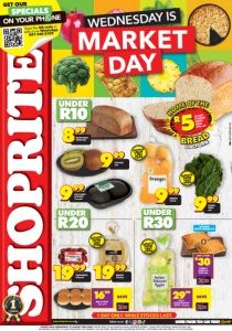 WEDNESDAY IS MARKET DAY 1 DAY ONLY. WHILE STOCKS LAST. R5 HOME OF THE BREAD IN-STORE STANDARD BROWN BREAD 600g each SINCE 2016 www.shoprite.co.za www.shoprite.mobi follow us on OFFERS VALID WEDNESDAY 27 AUGUST 2025 ONLY. PRICES APPLY TO ALL KWAZULU-NATAL SHOPRITE STORES. 3 DEALS PER CUSTOMER. WHILE STOCKS LAST. WE RESERVE THE RIGHT TO LIMIT QUANTITIES. NO TRADERS. VAT INCLUDED. ERRORS AND OMISSIONS EXCEPTED. CUSTOMER CARE LINE 0800 01 07 09 (TOLL-FREE). ECFOSLDKCG/E CHEAPER THAN LAST YEAR CHEAPER THAN LAST YEAR CHEAPER THAN LAST YEAR CHEAPER THAN LAST YEAR UNDER R20 UNDER R30 ZNFOSRDNQH/E MINI VETKOEK 6 per pack 1699 SAVE CLASS 1 GOLDEN DELICIOUS APPLES 1,5kg bag 2999 SAVE UNDER R10 EXCLUDES CHEESE BURGER PIE PIEMAN’S HOMESTYLE VALUE PIES R30 ANY 2 FOR 899 BROWN MAIZE BREAD 600g 999 KIWI FRUIT each 999 RIPE & READY AVOCADOS 2 per pack 999 ORANGES 1kg bag 999 SPINACH BUNCH each 1999 STRAWBERRIES 250g pack 1999 BANANAS 650g bag